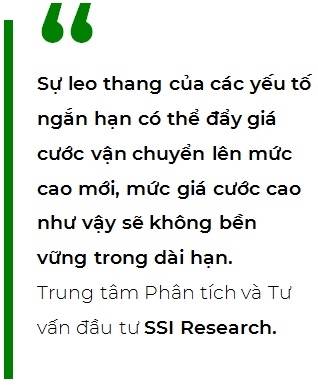 Tuy nhiên, SSI Research cho biết họ nhận thấy rằng một số yếu tố chỉ mang tính chất tạm thời và chắc chắn sẽ đảo chiều trong thời gian thích hợp, trong khi một số yếu tố khác là khá dài hạn và sẽ không sớm thay đổi. Điều này cho thấy sự leo thang của các yếu tố ngắn hạn có thể đẩy giá cước vận chuyển lên mức cao mới, mức giá cước cao như vậy sẽ không bền vững trong dài hạn. Theo đó, SSI Research đưa ra một số yếu tố ngắn hạn có thể giảm dần trong thời gian tới.